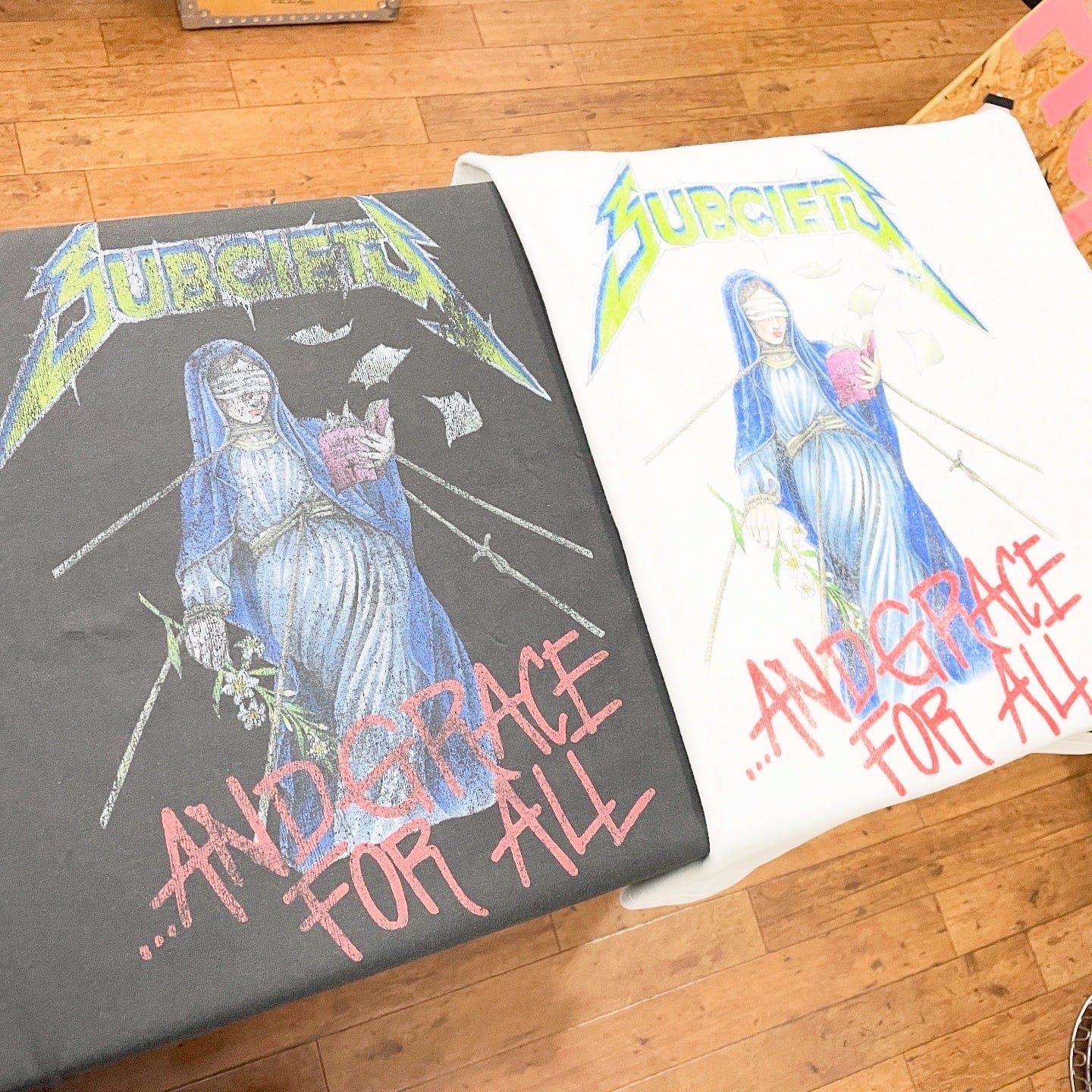 5.6オンスの天竺生地を採用。バンドのアルバムジャケットをイメージした『GRACE』のグラフィックを大判プリントで施しました。
