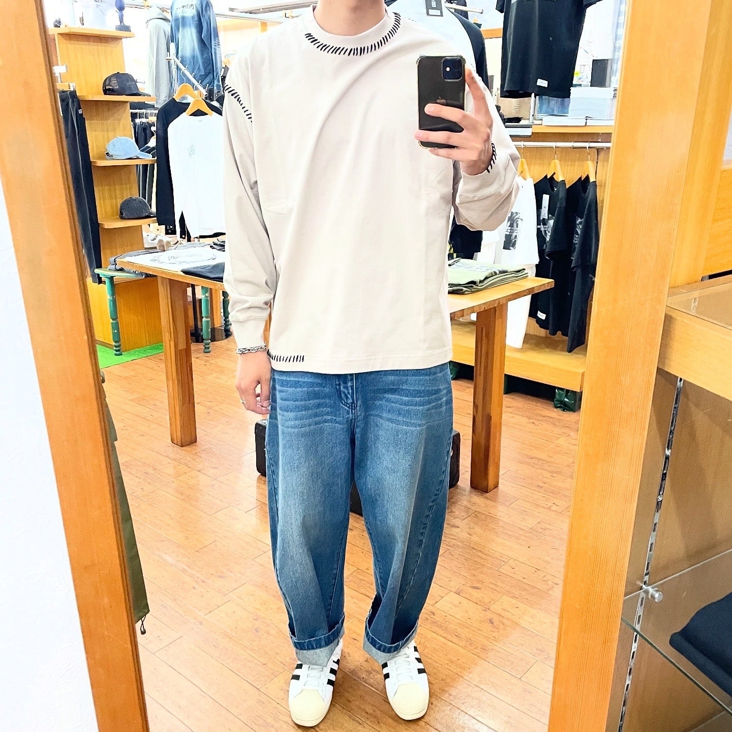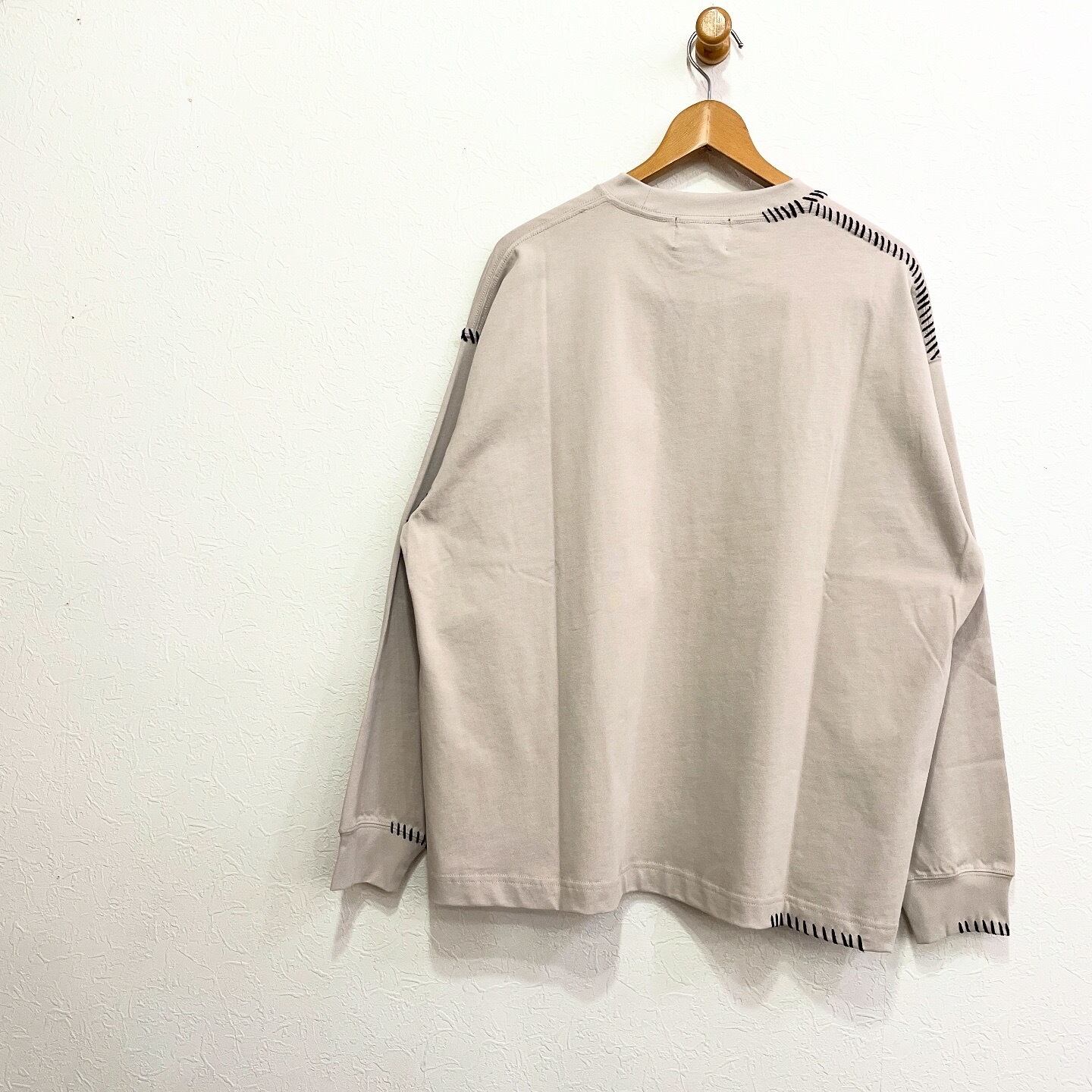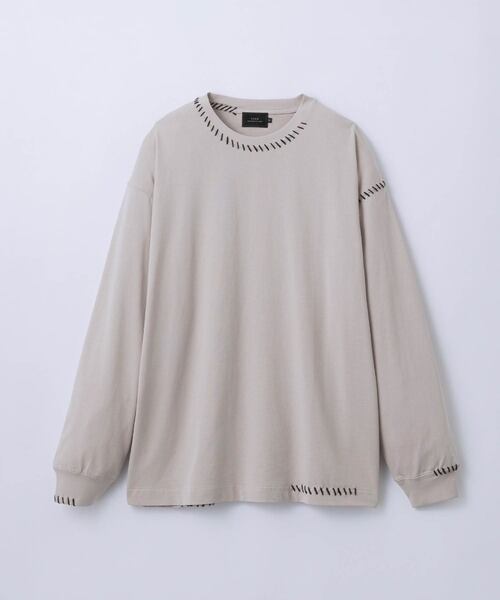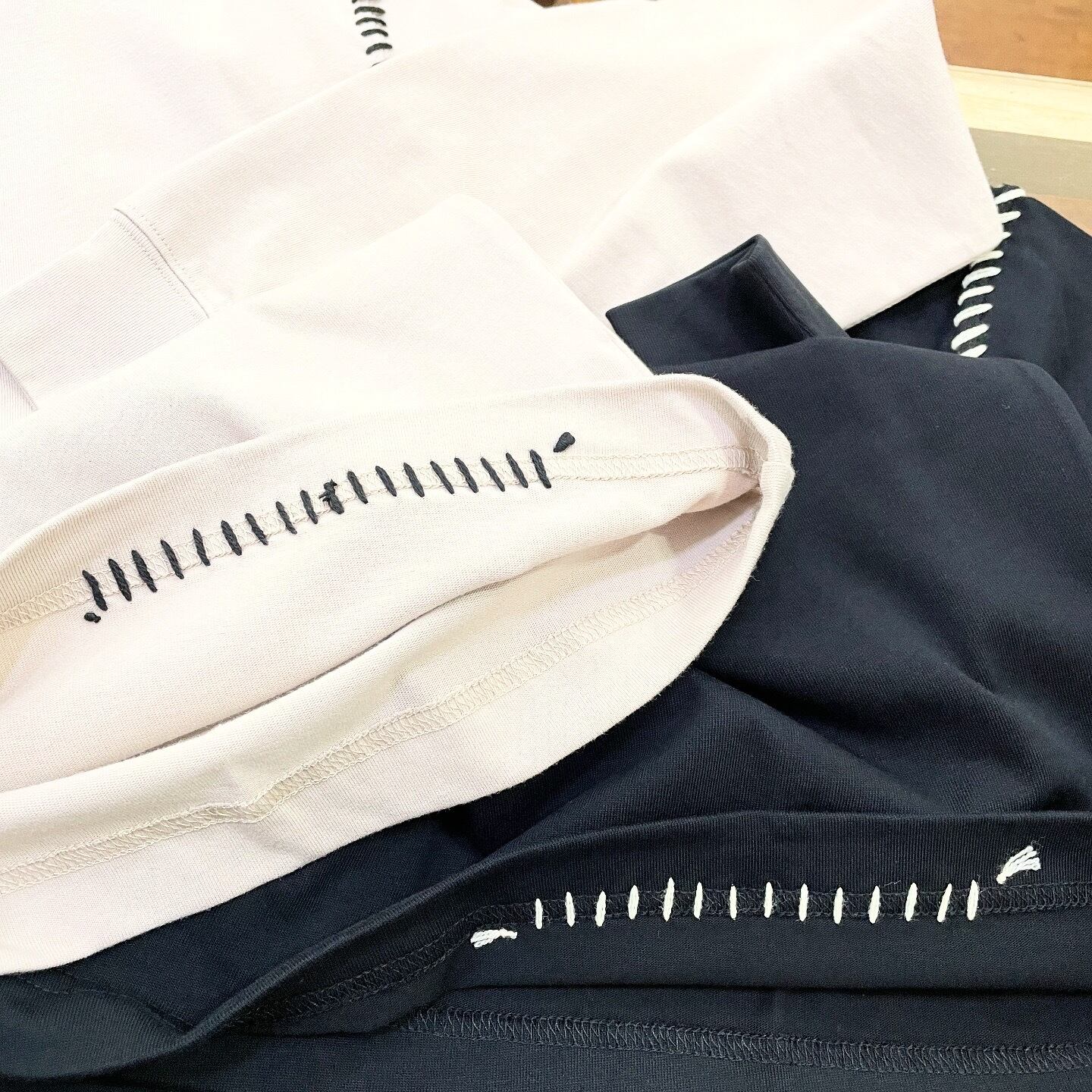 ネックラインや袖、サイドに施された配色のステッチ刺繍がさりげないアクセントに。