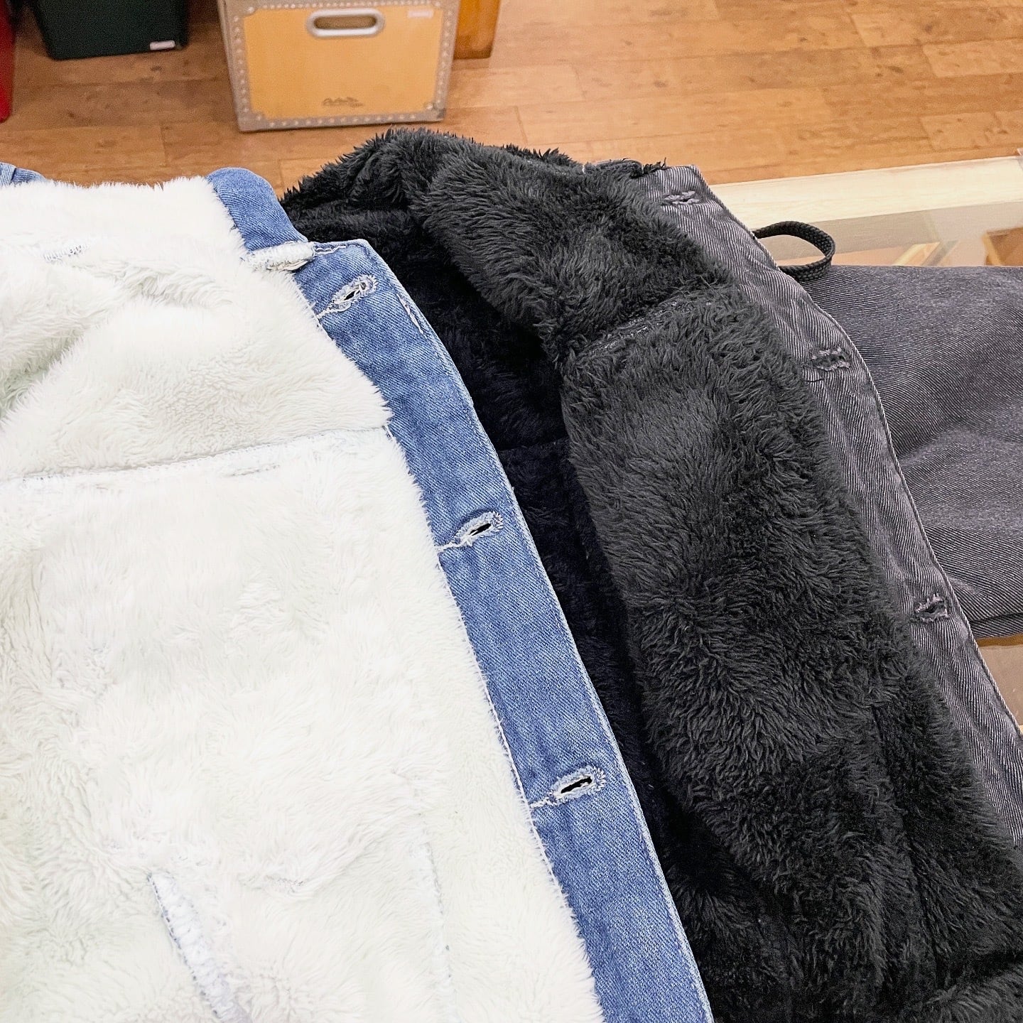 外は無骨なデニム、内側はふんわりボアで保温性も抜群。