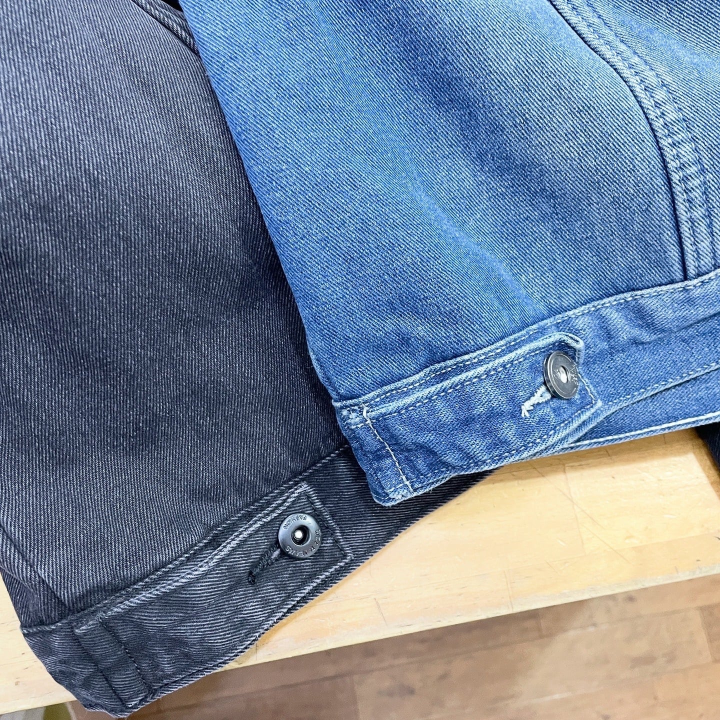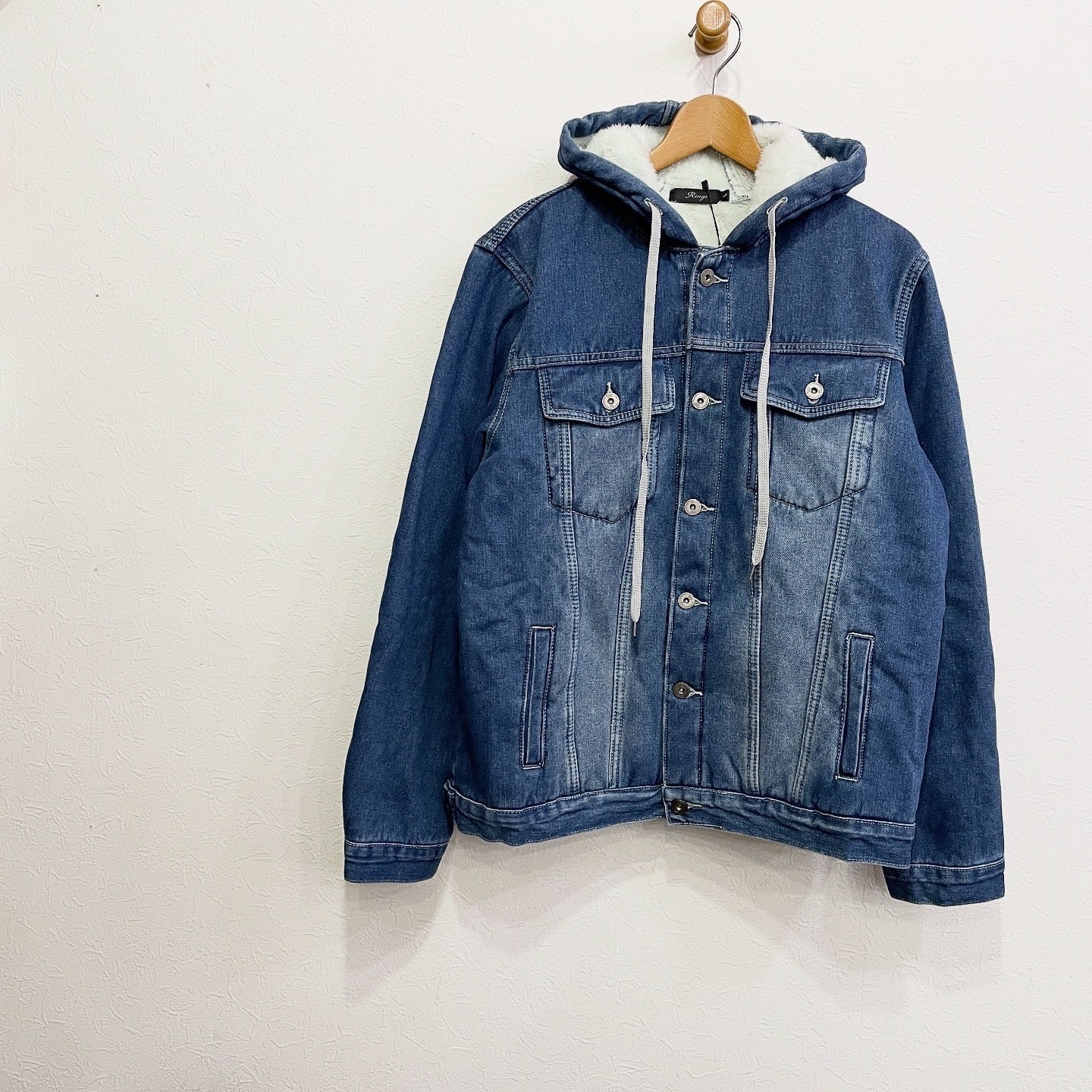 デニムジャケットにフード&裏ボアを組み合わせた、冬仕様のタフな一枚。
