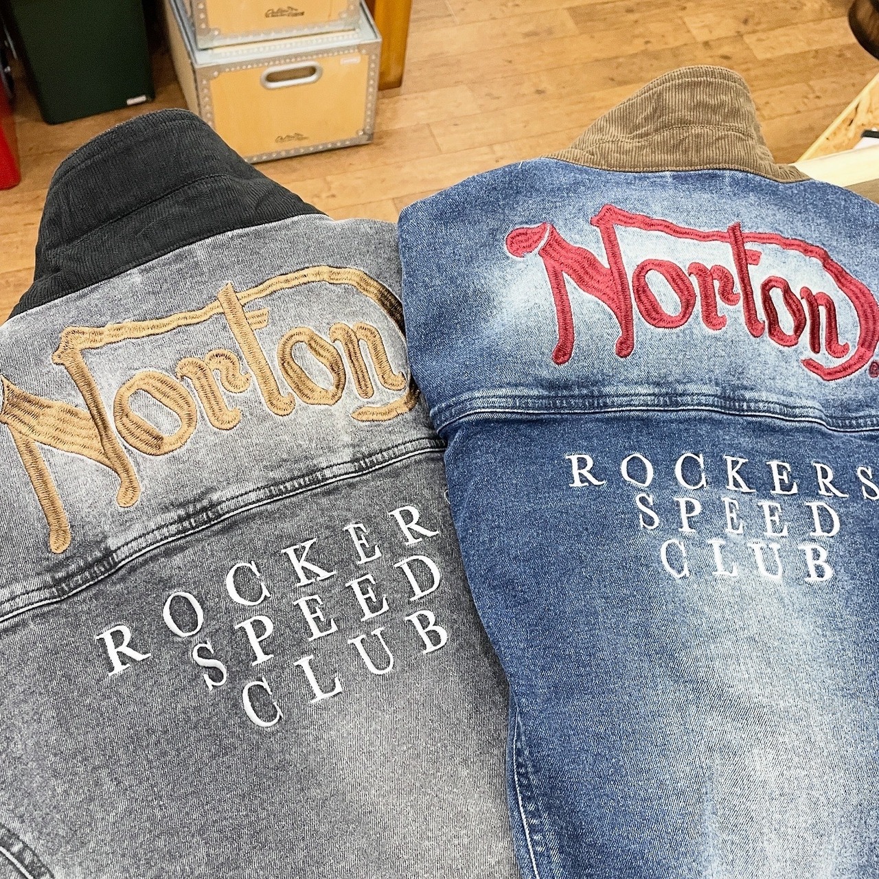 胸ポケットやバックにはロゴ刺繍を大胆に乗せ、Nortonらしい無骨な雰囲気が漂います。