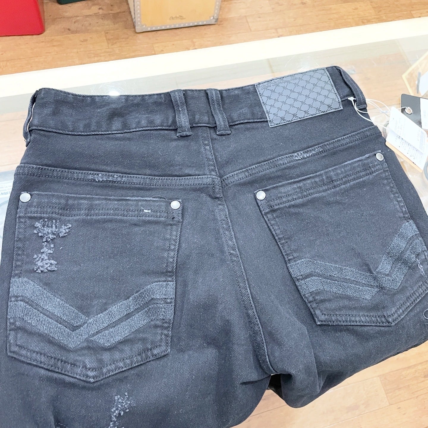 【ストレッチ ブルー ダメージ ブラック デニムパンツ】
