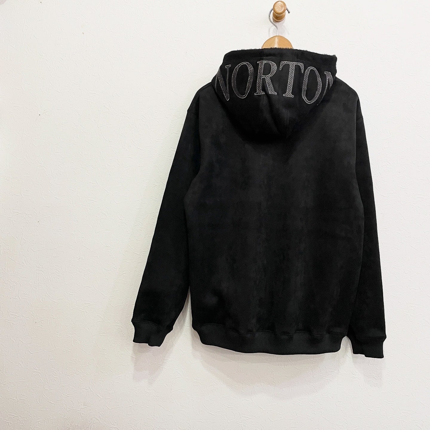 デザインは、Nortonらしい大胆なロゴ刺繍を、フロントとフードにON。