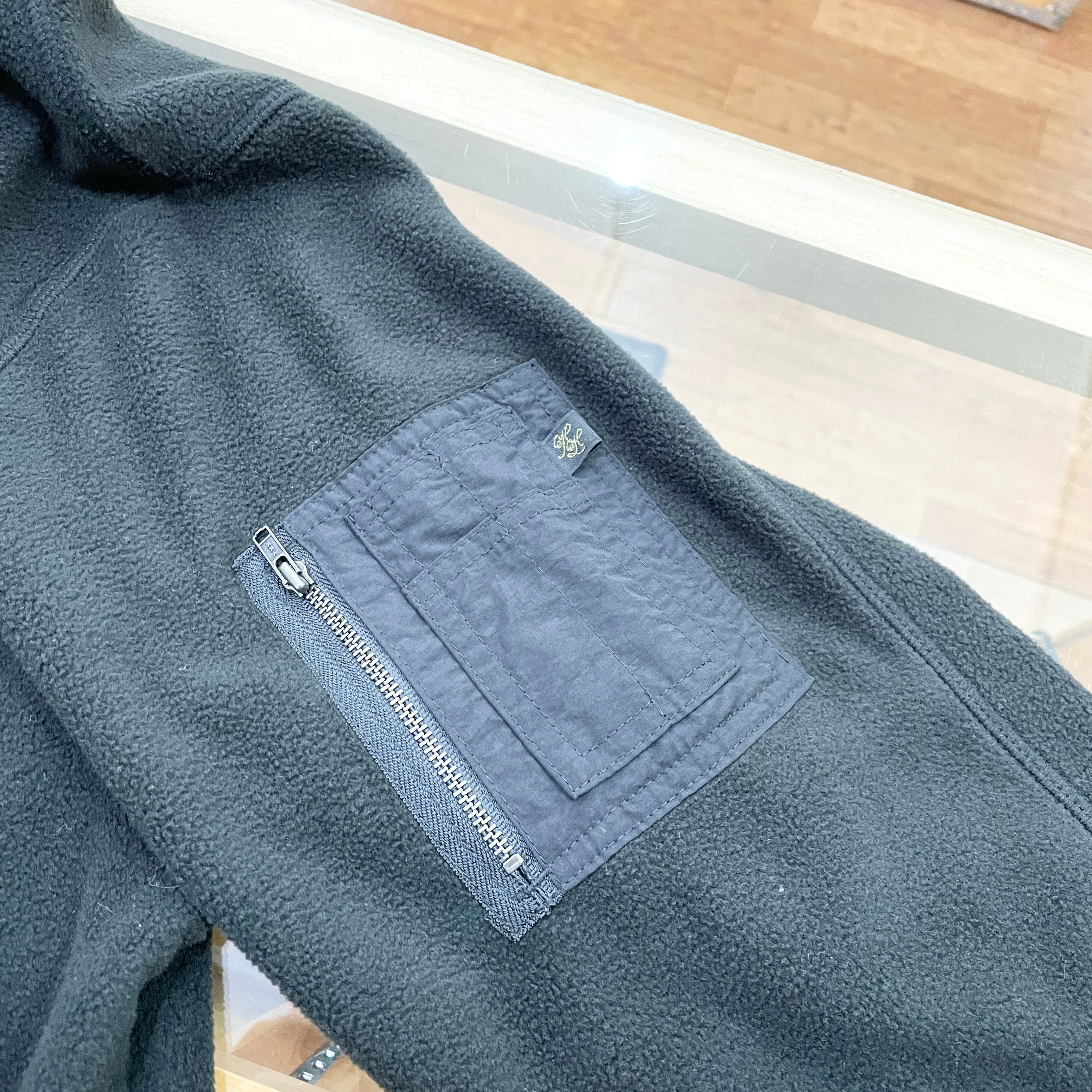 部分的にナイロン素材が使われていて、フリースとの異なる生地感がユニークです。