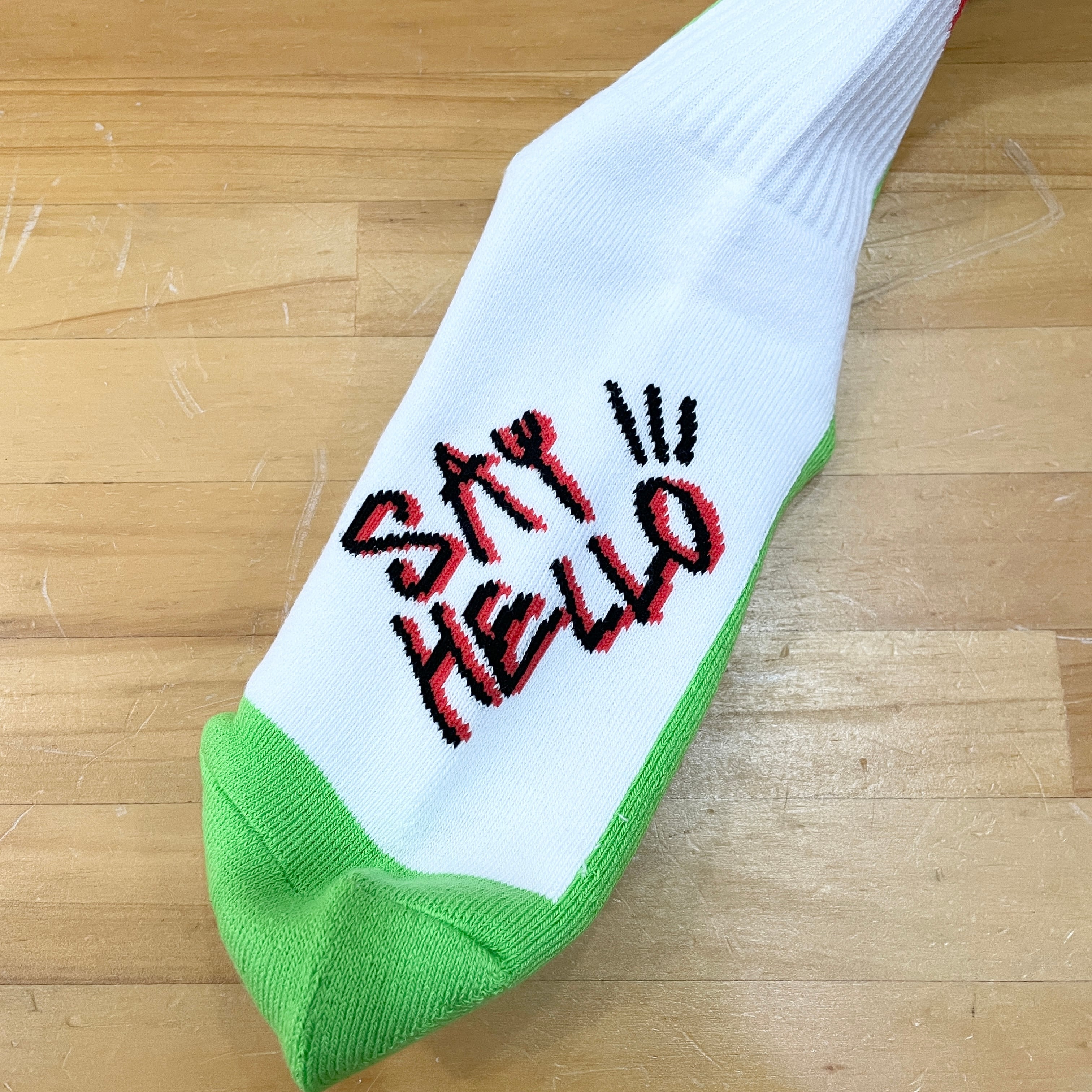 気の利いたワンフレーズが足の甲に「SAY HELLO」