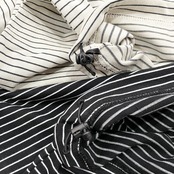 細かなピッチのボーダー柄は主張しすぎず、無地感覚で取り入れられる控えめな表情が特徴。