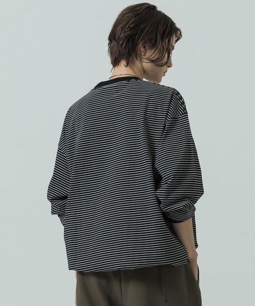 しっかりとした厚みのある30/2コーマ糸の天竺素材を使用した、マイクロボーダーのロングスリーブTシャツ。