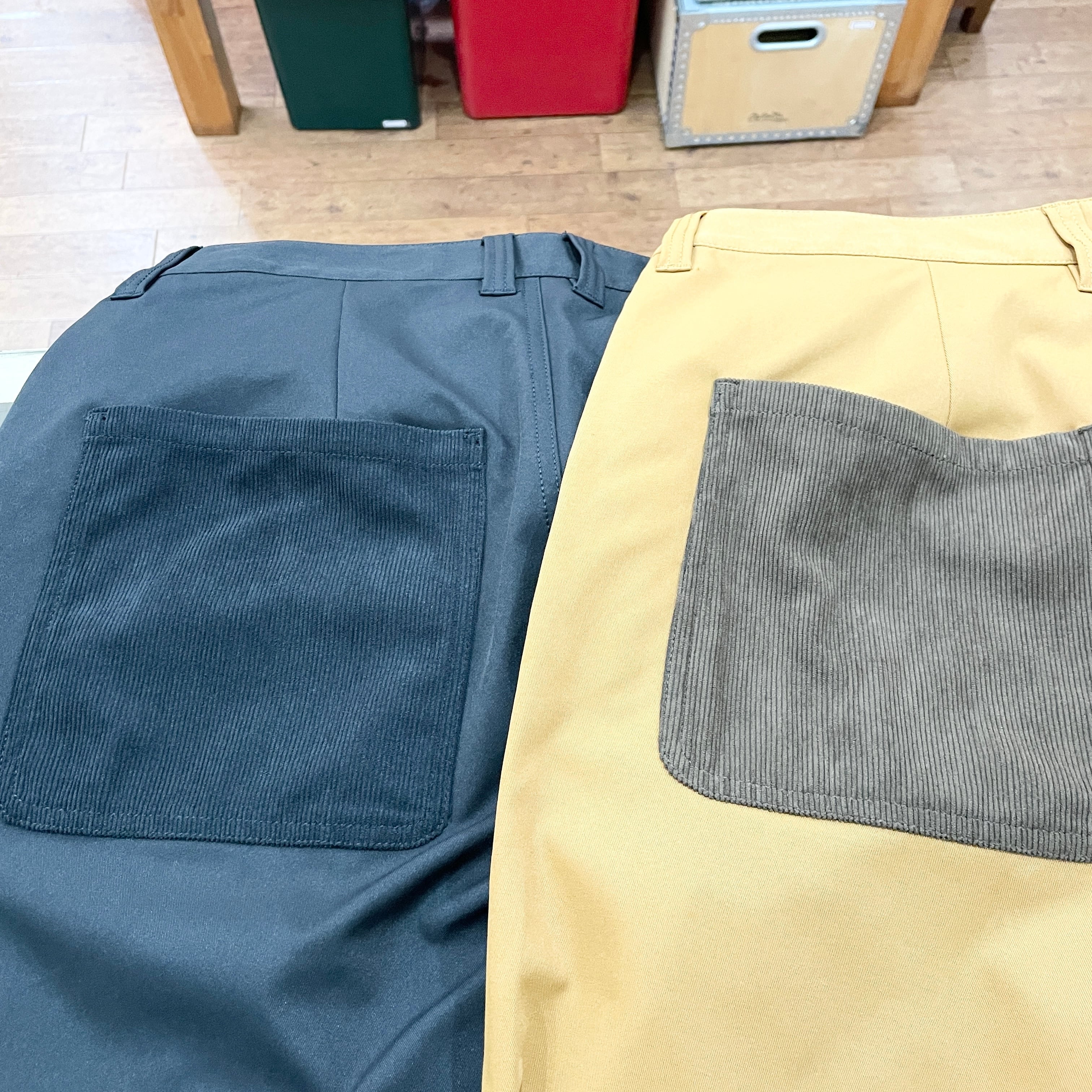 ポケット部分はコーデュロイで切り替え、遊び心のあるデザインに仕上げています。