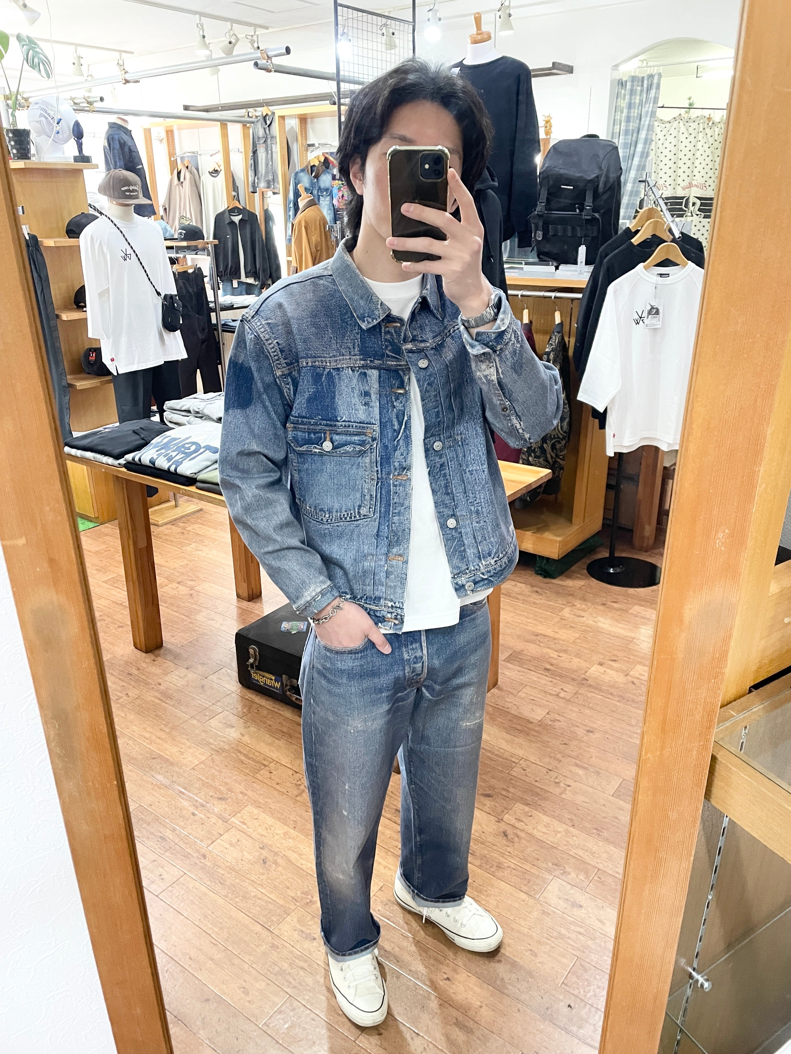 ヴィンテージの1STタイプデニムジャケットをベースに構築した一着。