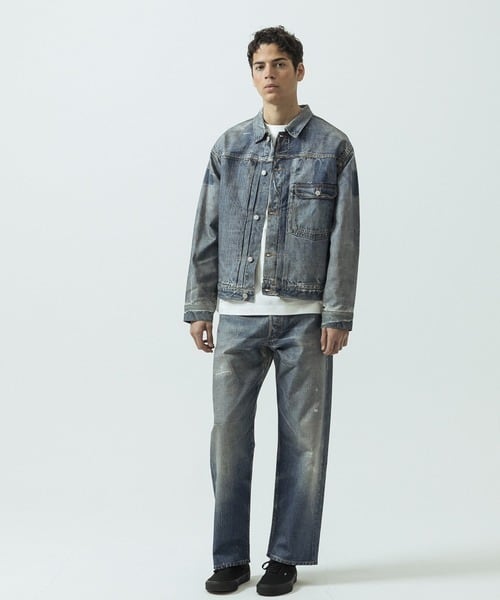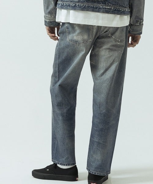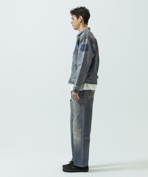 表面だけでなく奥行きを感じさせるプリント設計により、穿き込まれた古着のような質感を再現。