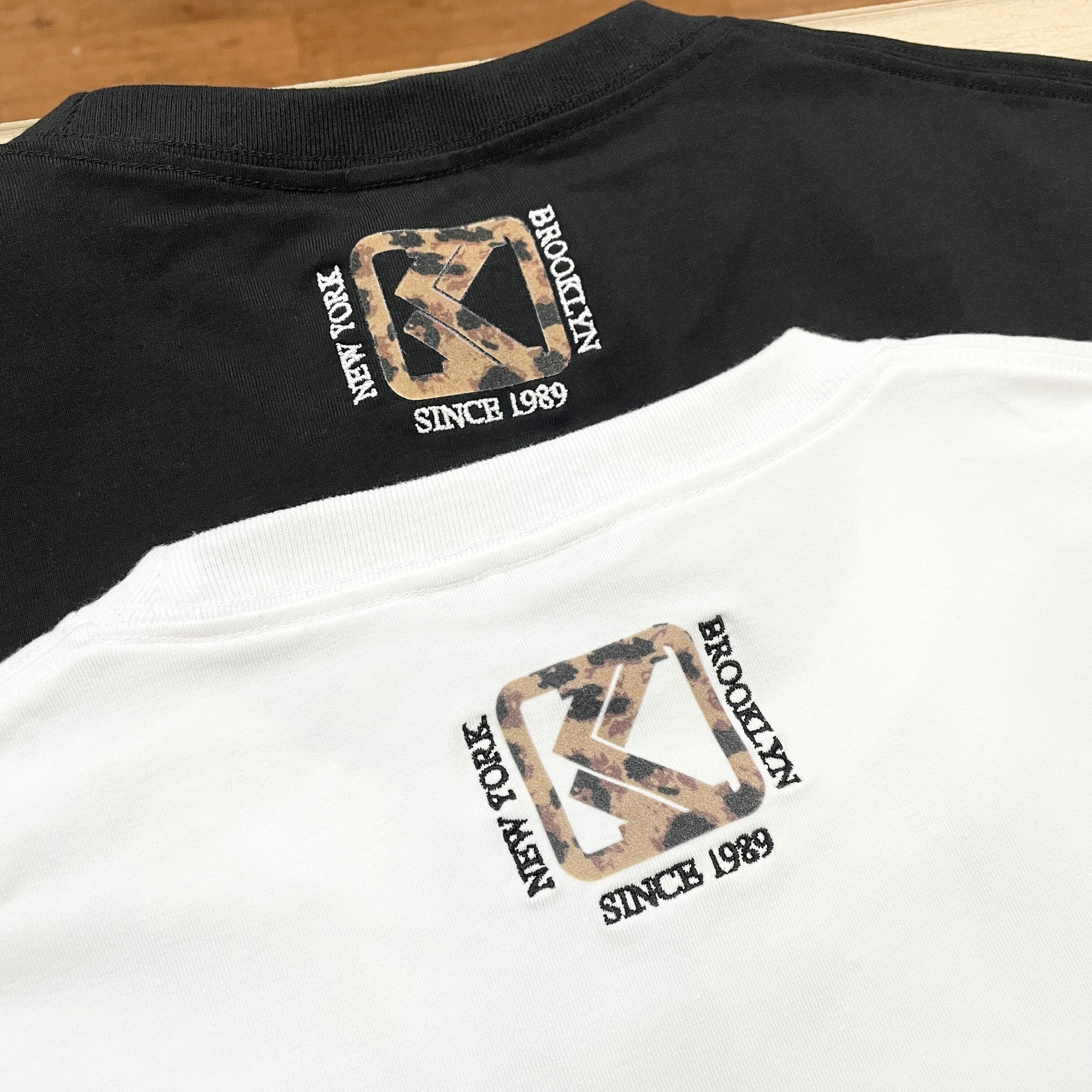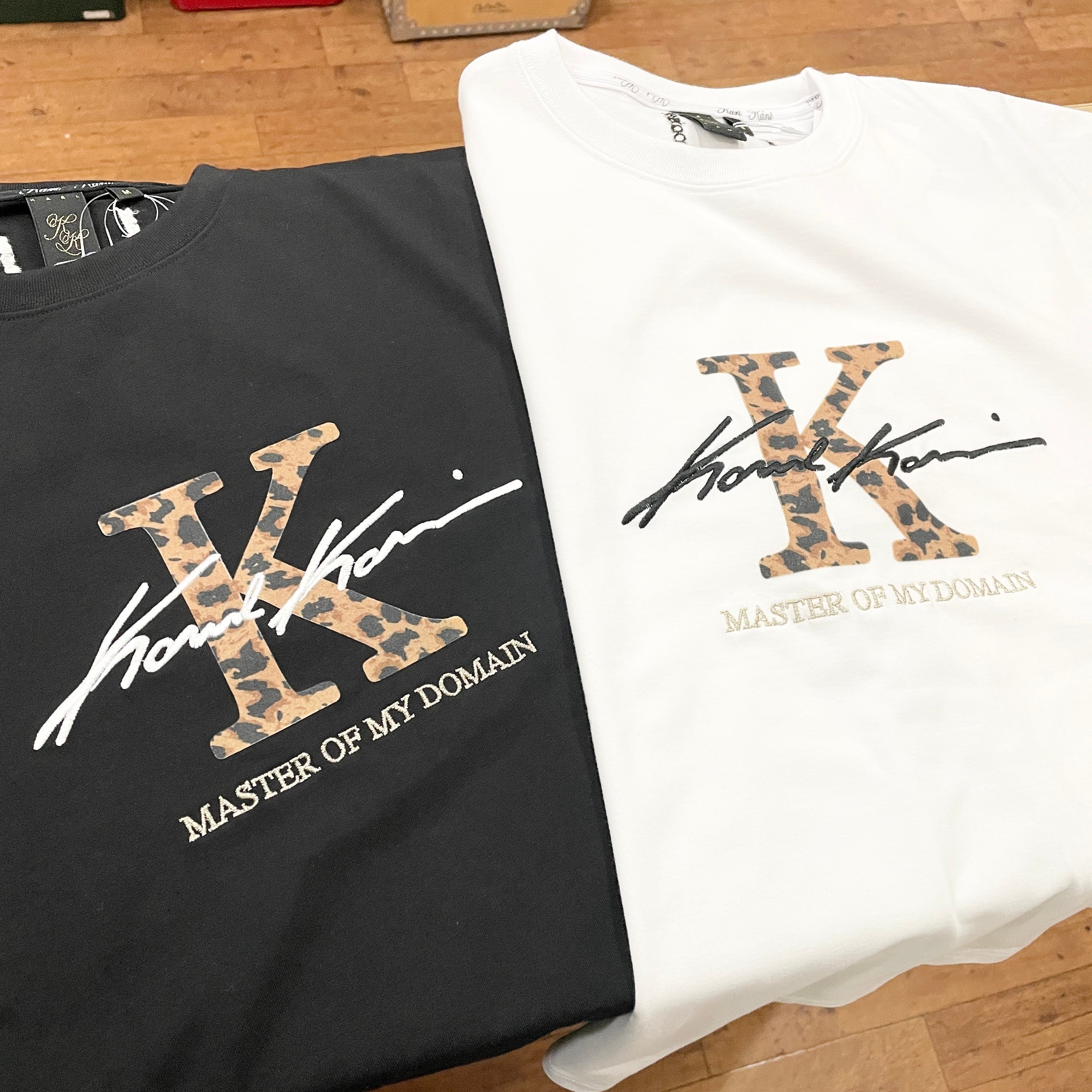 フロントのK、バックのブランドロゴはレオパード柄のフロッキープリントで、シンプルながら存在感のある一枚に仕上げました。