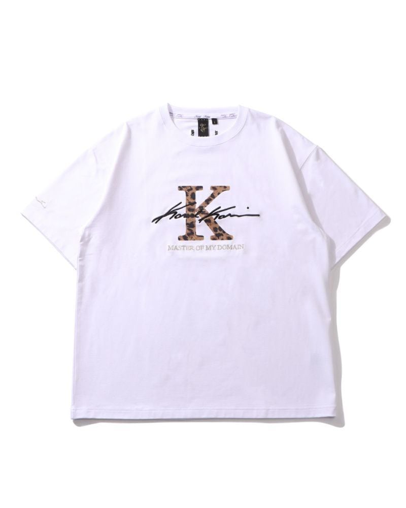 フロントのK、バックのブランドロゴはレオパード柄のフロッキープリントで、シンプルながら存在感のある一枚に仕上げました。