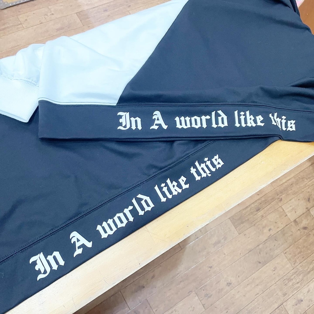 肘・裾のリブにプリントを施したデザインです。