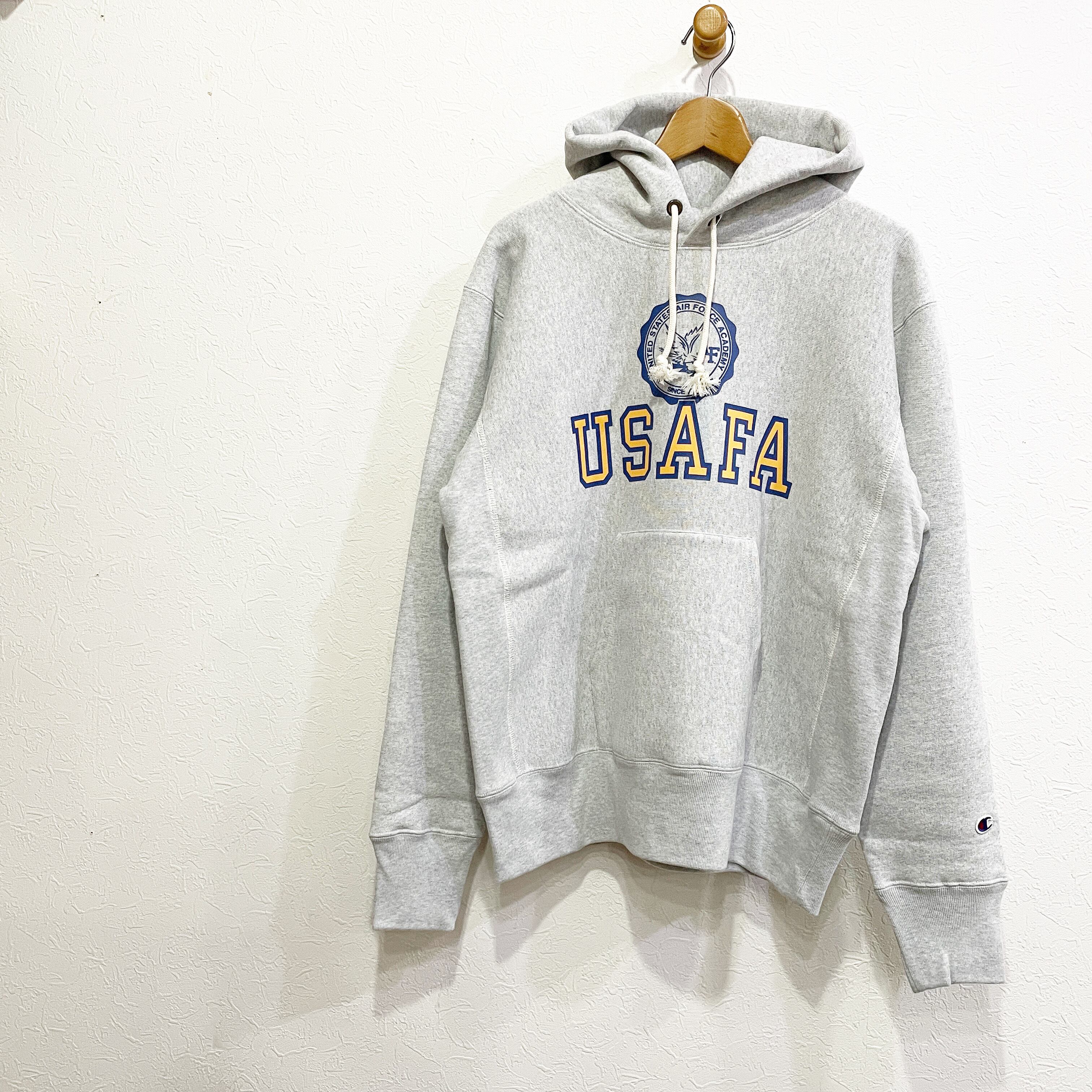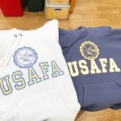 胸のプリントはアメリカ合衆国の空軍士官学校(United States Air Force Academy)をモチーフにしたもので、ストレート型にレイアウトした「USAFA」の上に校章をイメージしたオリジナルのマークを組み合わせたデザイン。