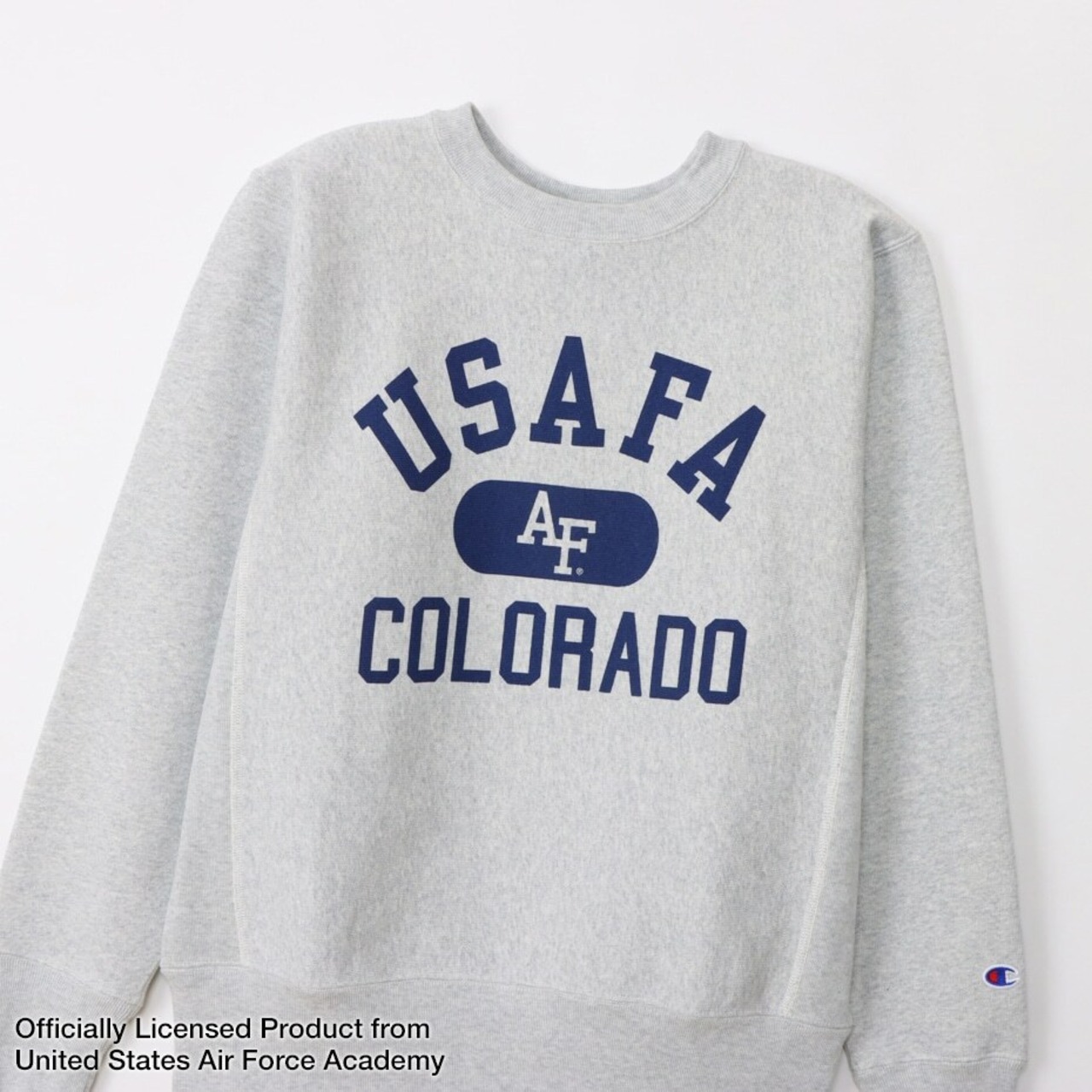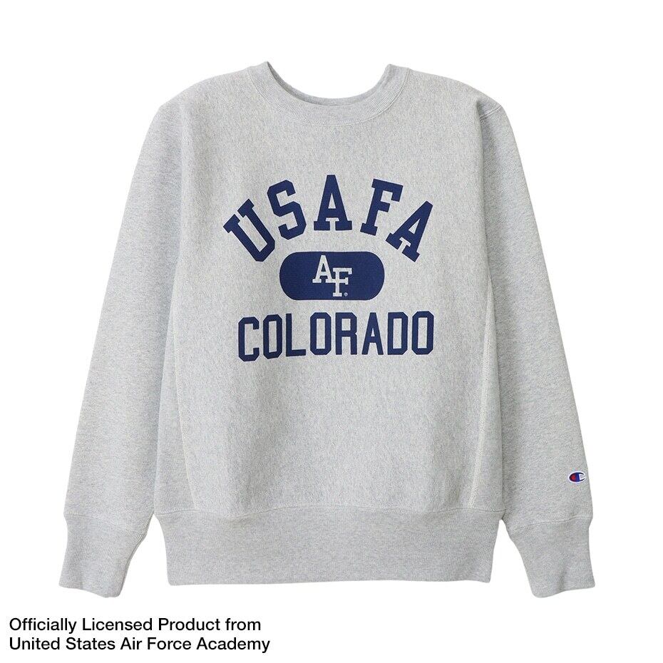 胸のプリントはアメリカ合衆国の空軍士官学校(United States Air Force Academy)をモチーフにしたもので、アーチ型にレイアウトした「USAFA」の下に「AIR FORCE」を意味する「AF」を入れたカプセル、さらに学校の所在地である「COLORADO(コロラド)」を組み合わせたデザイン。